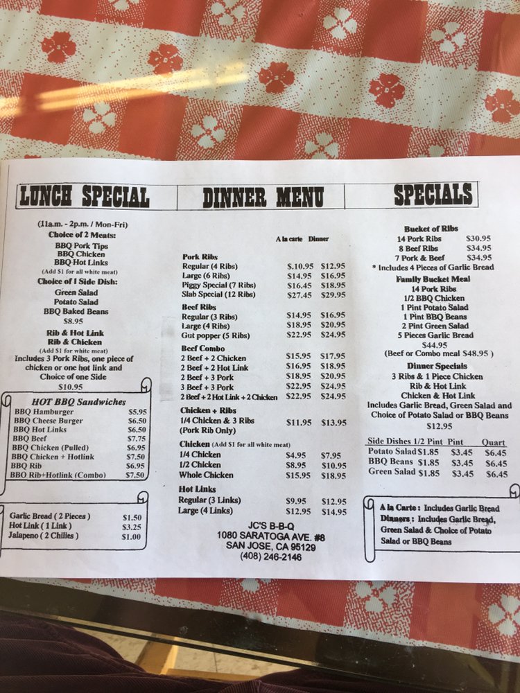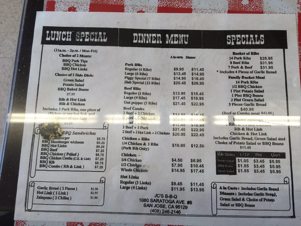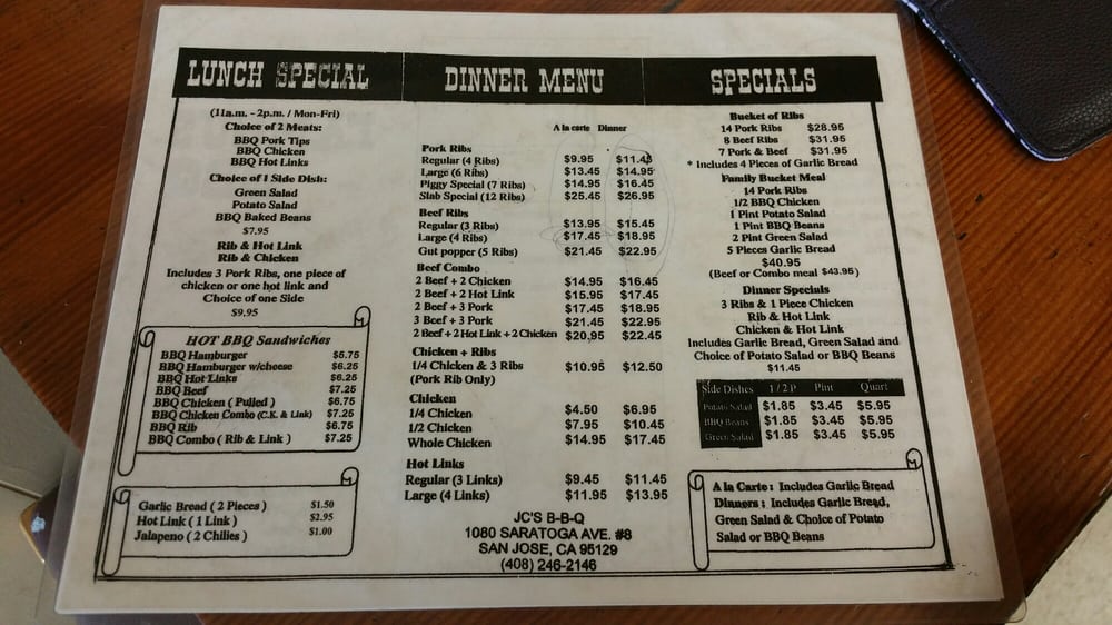 JC’s Famous BBQ Menu (Update 2025)